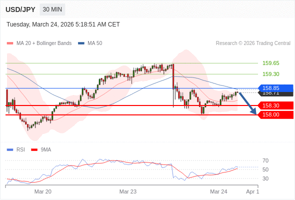 在 158.85 之下,看跌,目标价位为 158.30 ,然后为 158.00 。