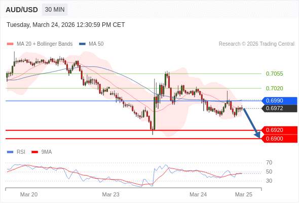 在 0.6990 之下,看跌,目标价位为 0.6920 ,然后为 0.6900 。