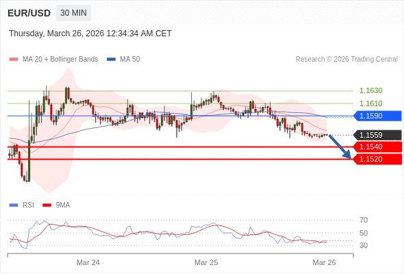 交易策略: 在 1.1590 之下,看跌,目标价位为 1.1540 ,然后为 1.1520 。