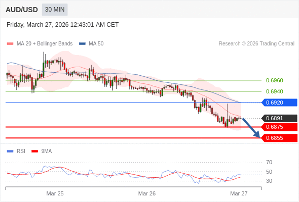 交易策略: 在 0.6920 之下,看跌,目标价位为 0.6875 ,然后为 0.6855 。