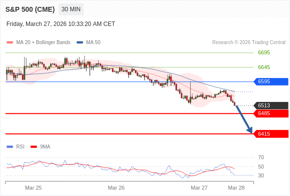 在 6595 之下,看跌,目标价位为 6485 ,然后为 6415 。
