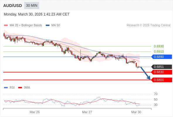 交易策略: 在 0.6890 之下,看跌,目标价位为 0.6830 ,然后为 0.6800 。