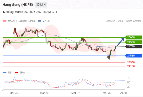 香港恒生指数期货 当日内: 目标位为25080。