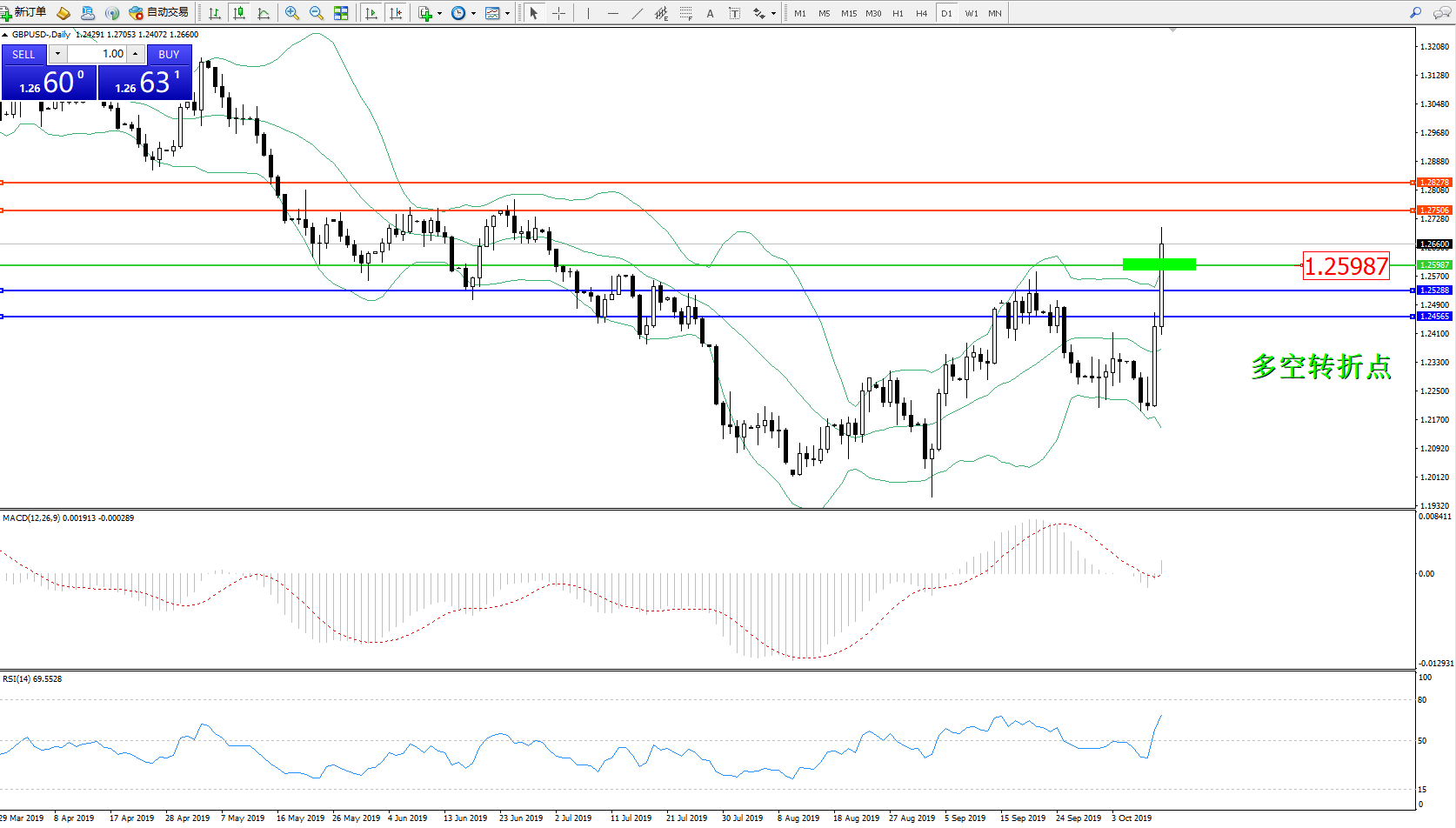 交易策略:1.25987上方看涨,目标1.27506、1.28278