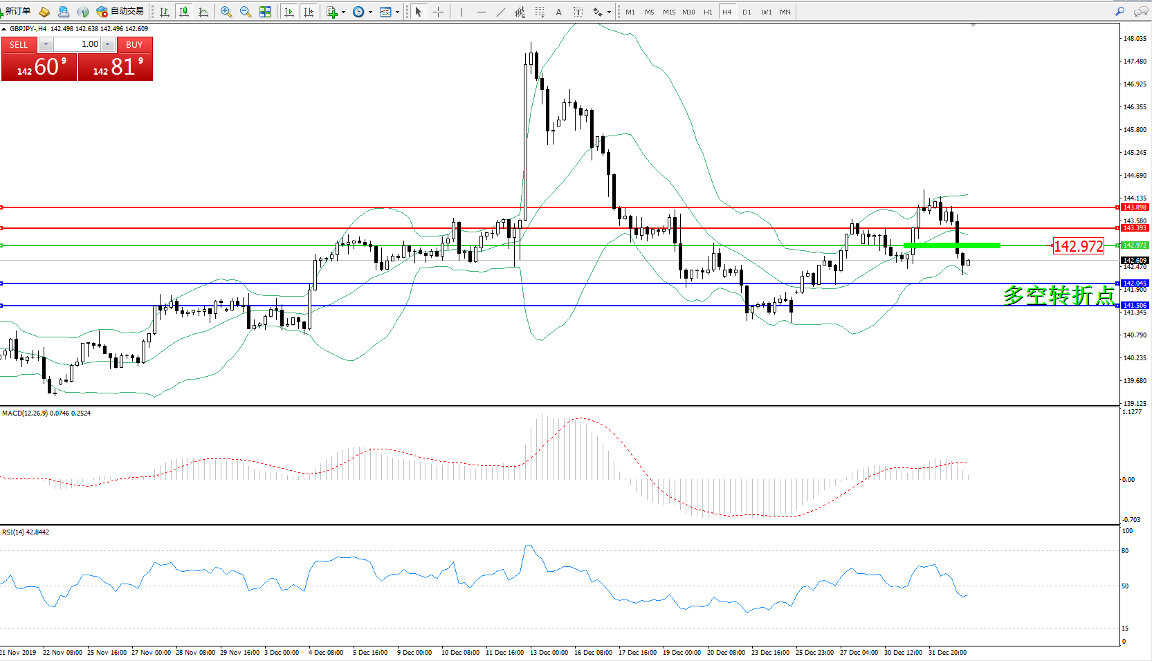 交易策略:142.972下方看跌,目标142.045141.506