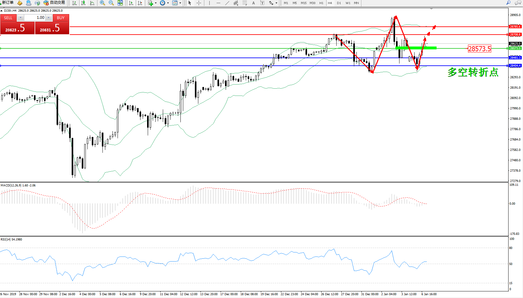 道琼斯指数1月6日(周一)收盘上涨68.60点,涨幅0.24%,报28703.45点。美国股市周一上涨,受好于预期的美国服务业PMI数据提振,道指脱离了盘中低点;重量级科技公司引领反弹。上周中东紧张局势骤然升级引发的避险情绪周一逐渐消退,投资者再次聚焦贸易局势改善和向好的经济数字。但是围绕伊朗对美国空袭的潜在反应的不确定性仍然笼罩着市场。