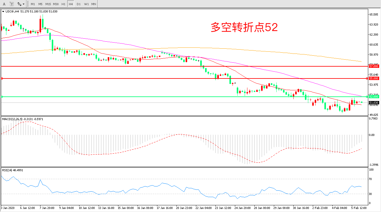 交易策略:在52.00之下看跌,目标49.00         45.00