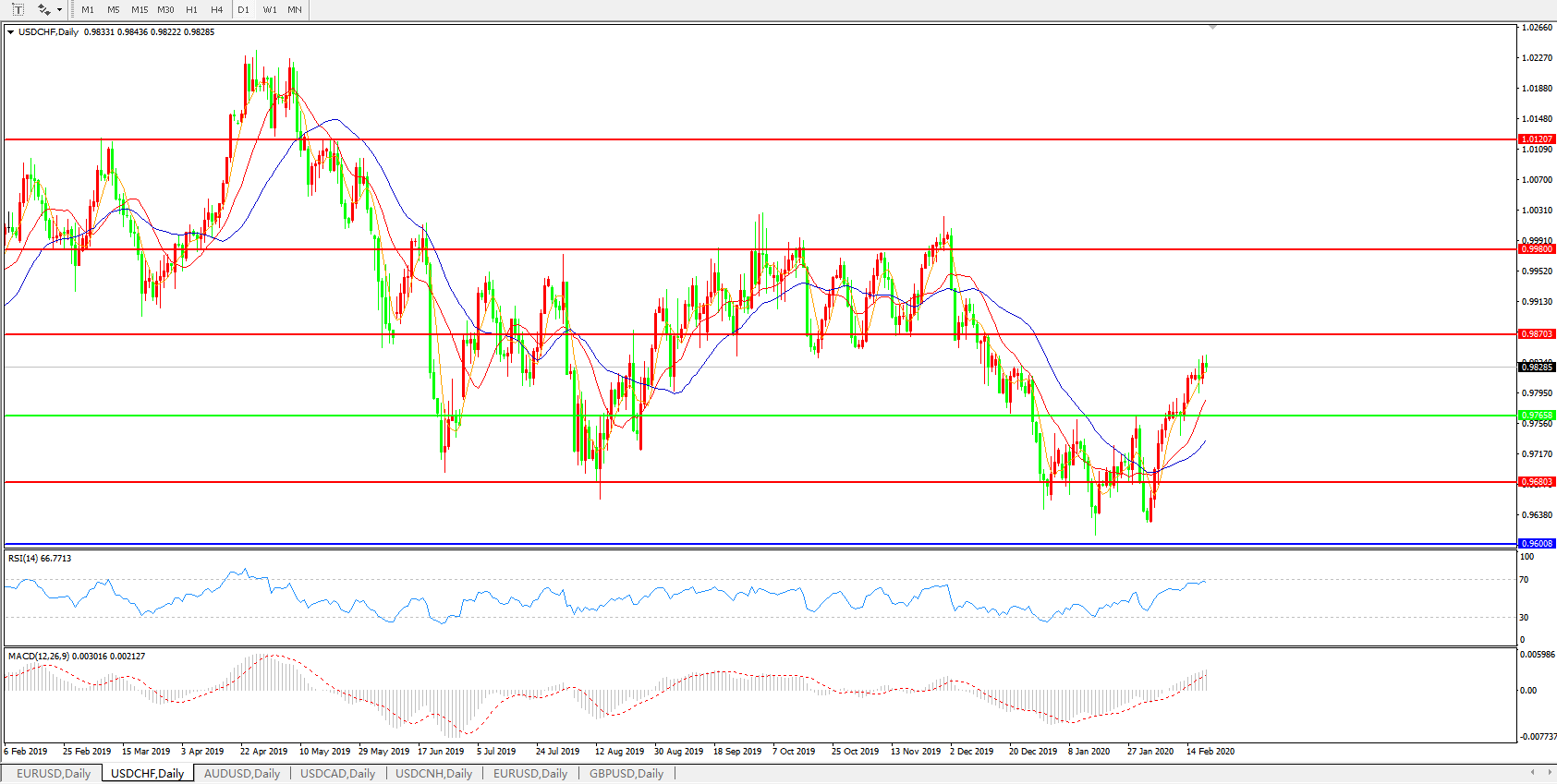 美元兑瑞郎USDCHF 日线图: