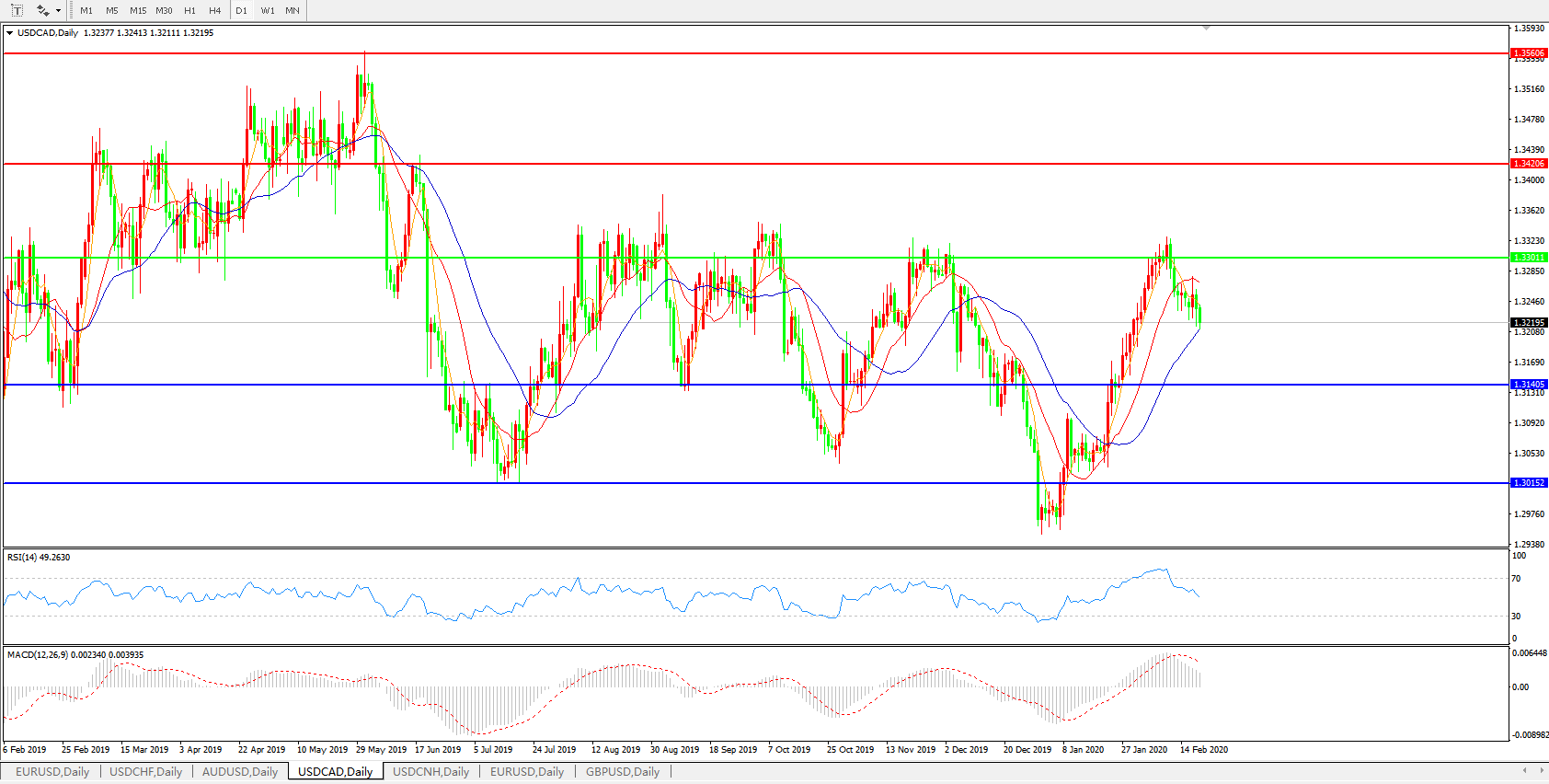 美元兑加元USDCAD 日线图: