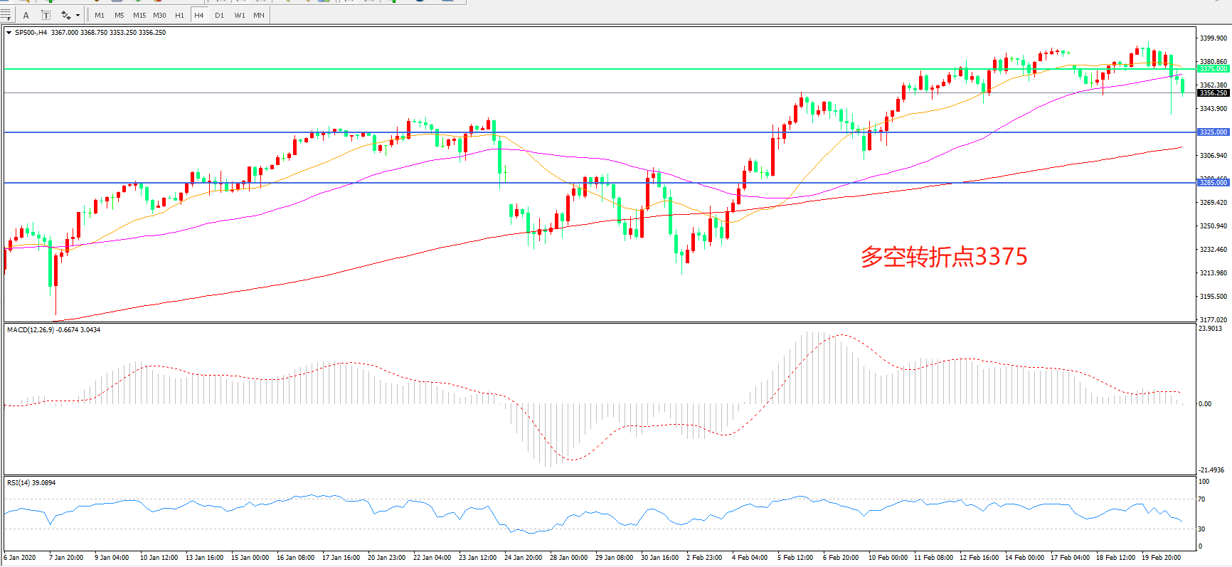 多空转折点:3375.00