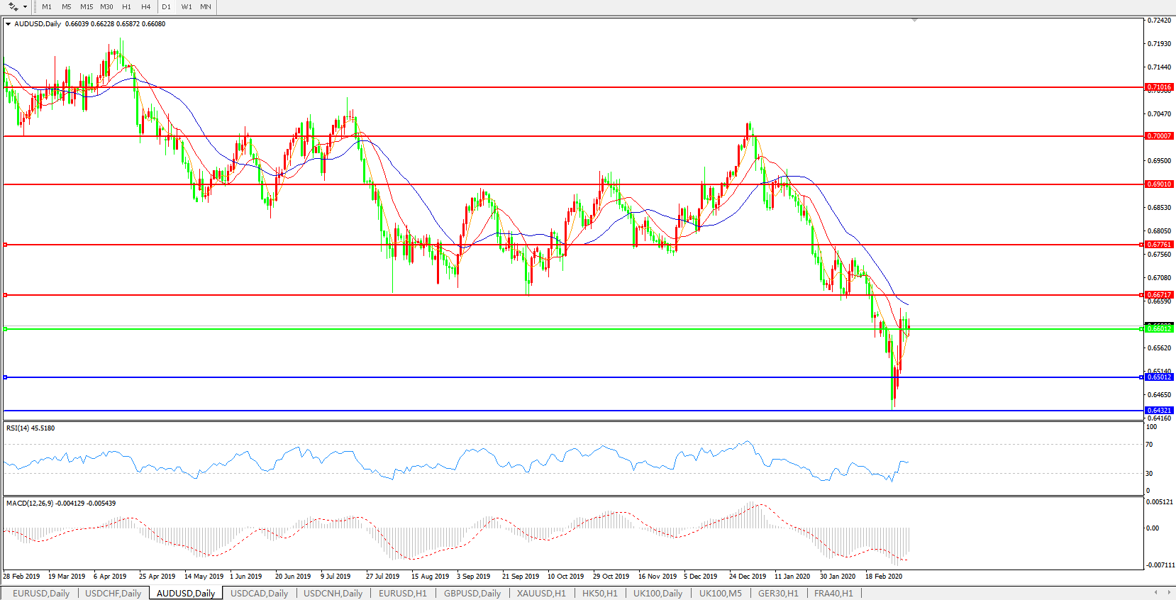 澳元兑美元AUDUSD 日线图: