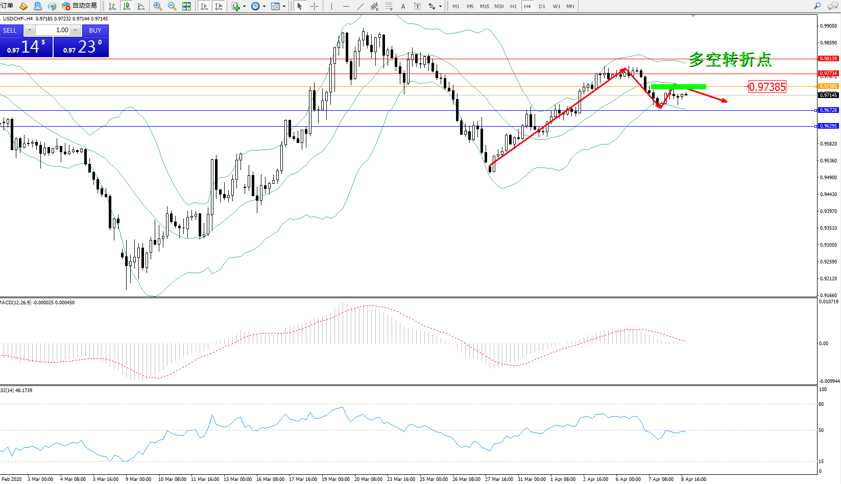 交易策略:0.97385下方看跌,目标0.96728、0.96295