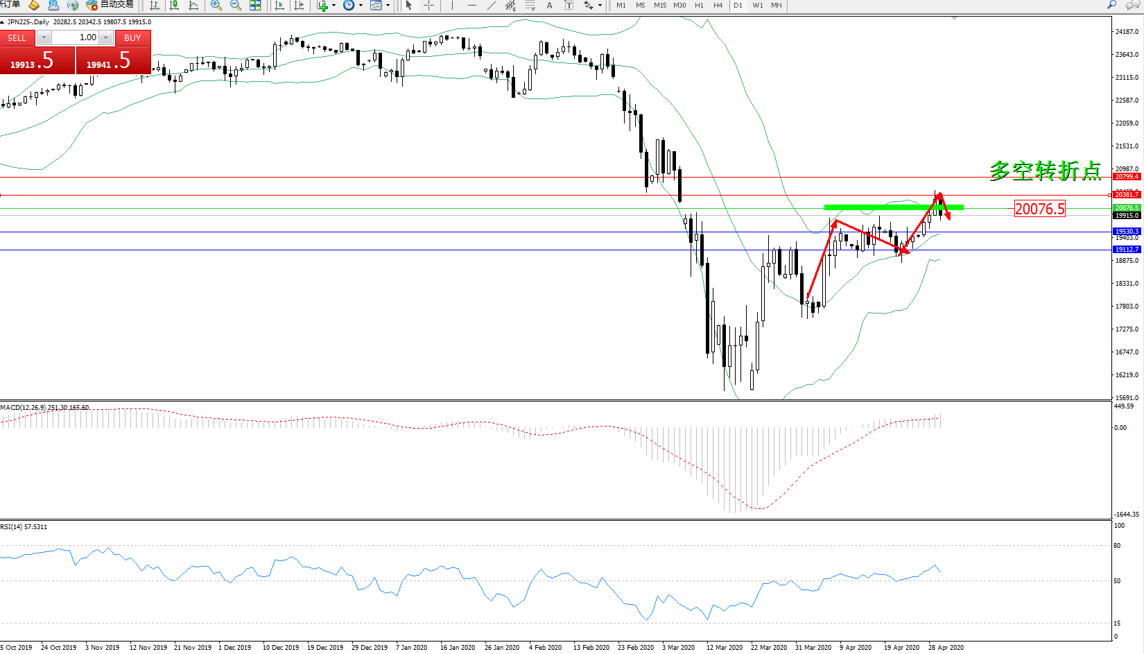 日经指数JPN225——日K线图显示: