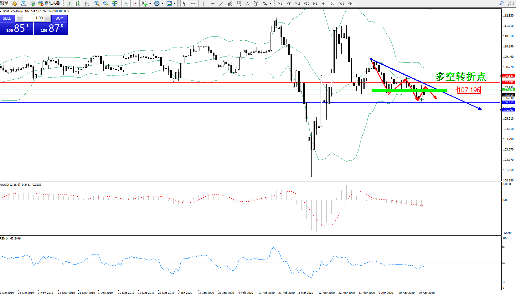 美元兑日元收低0.57%106.871,盘中触及六周低位106.354。受到新型冠状病毒疫情及保持社交距离政策的影响,日本4月消费者信心大幅恶化并触及纪录低点。日本央行扩大货币刺激措施,承诺无限量购买债券,以便将借款成本维持在低位。日本政府目前正努力通过支出来让经济摆脱疫情招致的痛苦。日首相五表示,倾向于将日本的紧急状态延长一个月左右。与此同时,专家们表示,在确诊病例进一步下降之前,日本应继续实施限制措施。