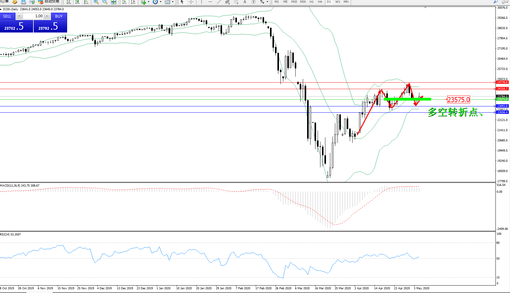 多空转折点:23575
