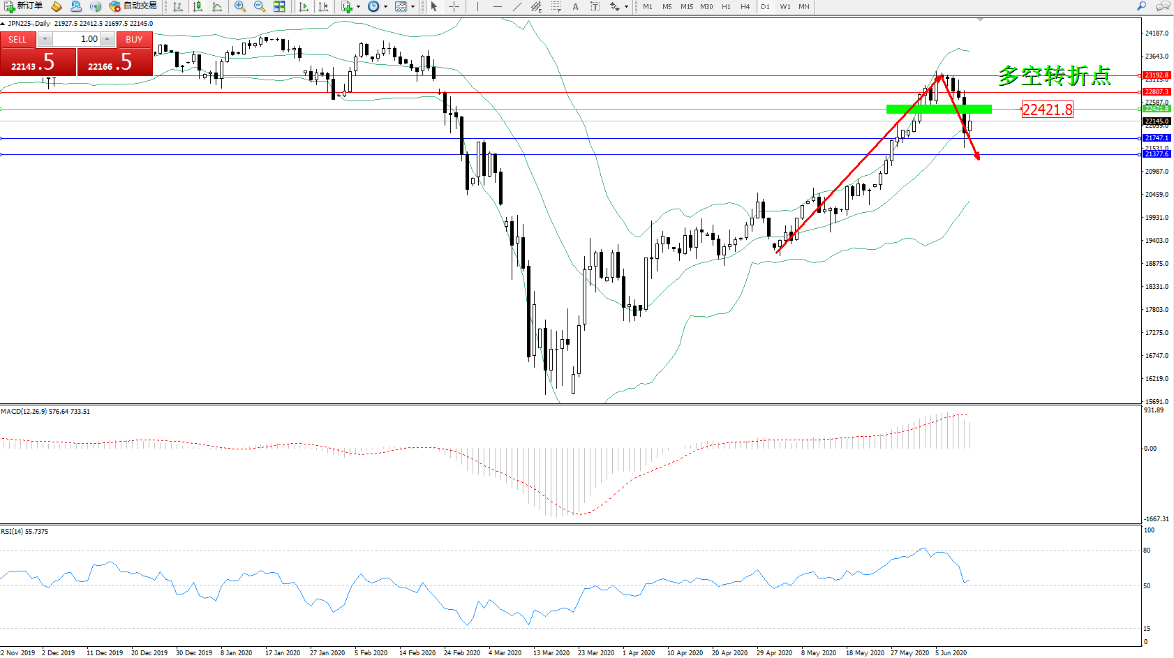 日经225指数612日(周五)收盘下跌180.41点,跌幅0.80%,报22292.50点。因为疫情危机,日本经济可能重陷衰退;日本2020年二季度GDP预计环比萎缩21.3%,第三季度料恢复增长8.0%;日本2020年全年GDP料同比萎缩5.2%2021年料增长3.2%。日本首相安倍晋三可以不经国会审批就动用940亿美元应急资金,反对党议员把这笔钱称作安倍的“零花钱”,对如此巨大的数额感到震惊;安倍表示,我们会向国会报告,我们是如何根据需要在适当的时候支用这笔钱的;然而这笔资金的规模是通常储备金的20倍,几乎相当于日本教育和国防开支的总和,以至于对这笔钱的支出拥有裁量权的官员也心生疑问,周五日本国会料将通过该应急资金。