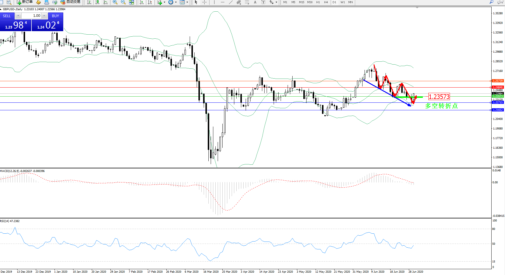 交易策略:1.23573上方看涨,目标1.248401.25739