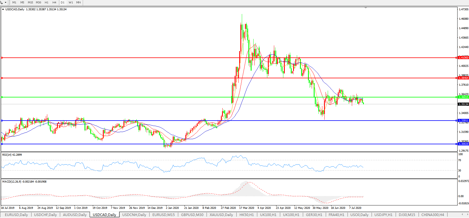 美元兑加元USDCAD 日线图: