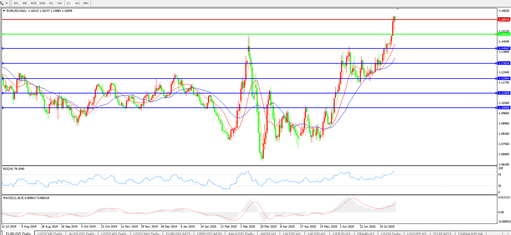 欧元兑美元EURUSD 日线图: