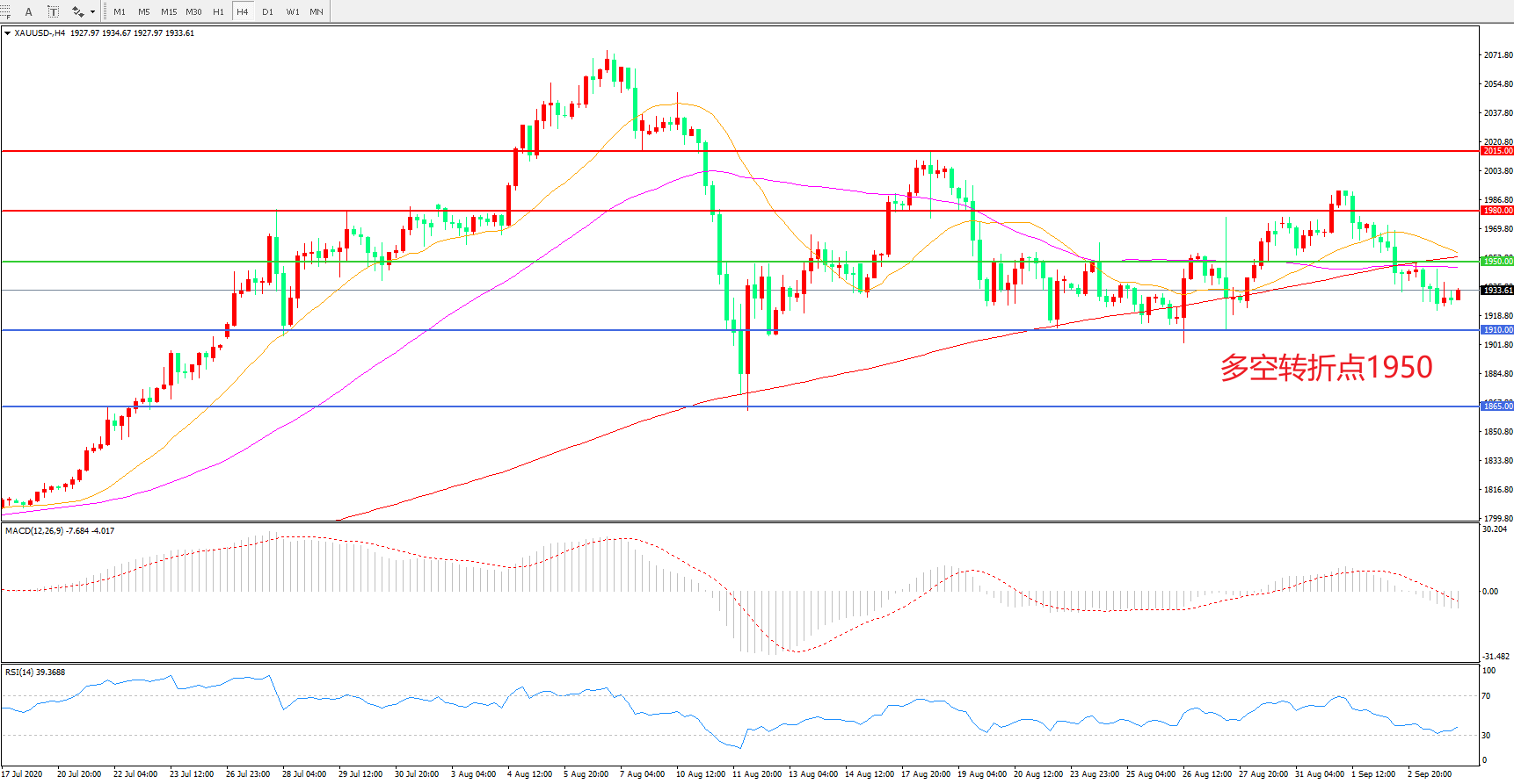交易策略:在1950.00之下看跌,目标1910.00 1865.00