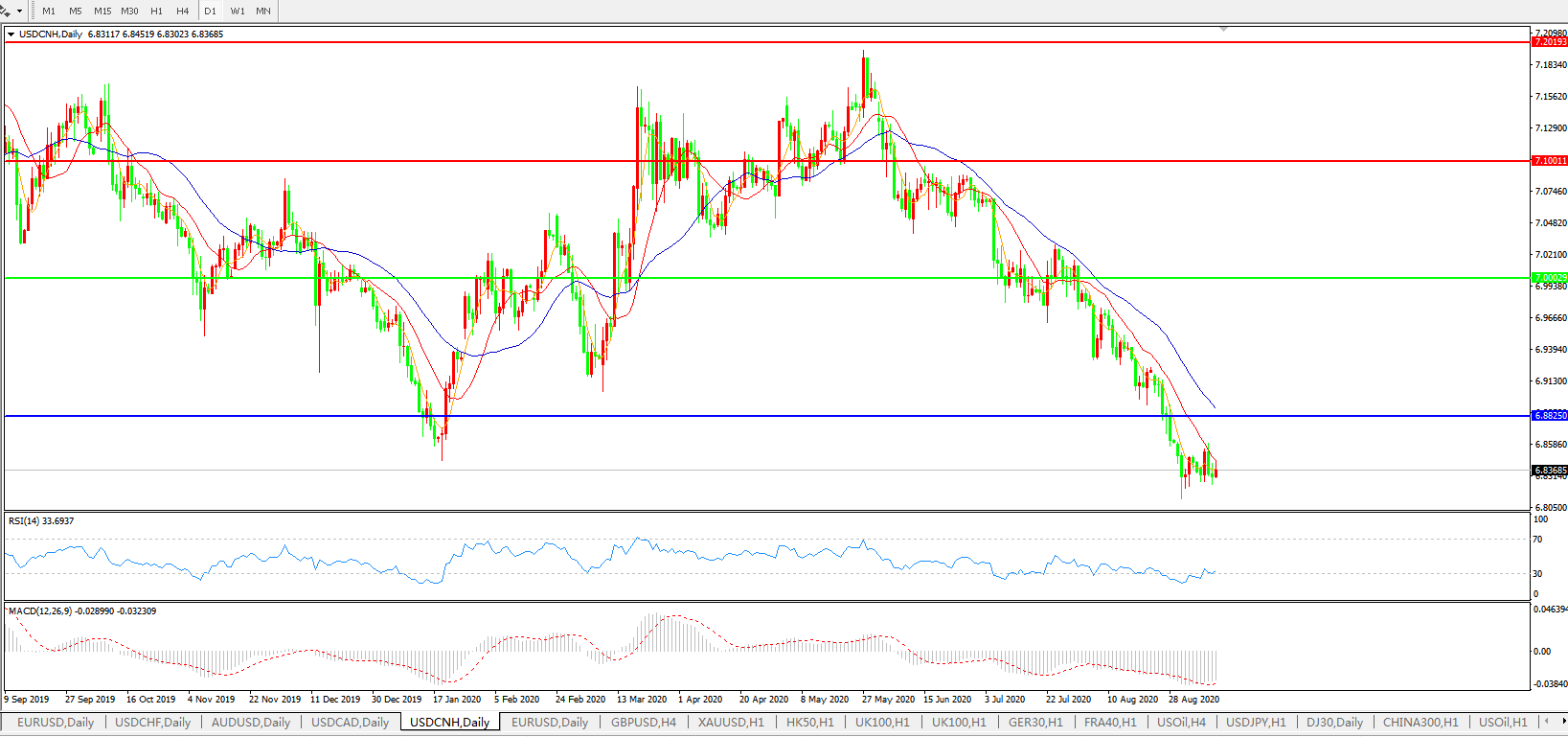 交易策略: 在7.0000之下,看跌,目标价位为6.8800,然后为6.7615。