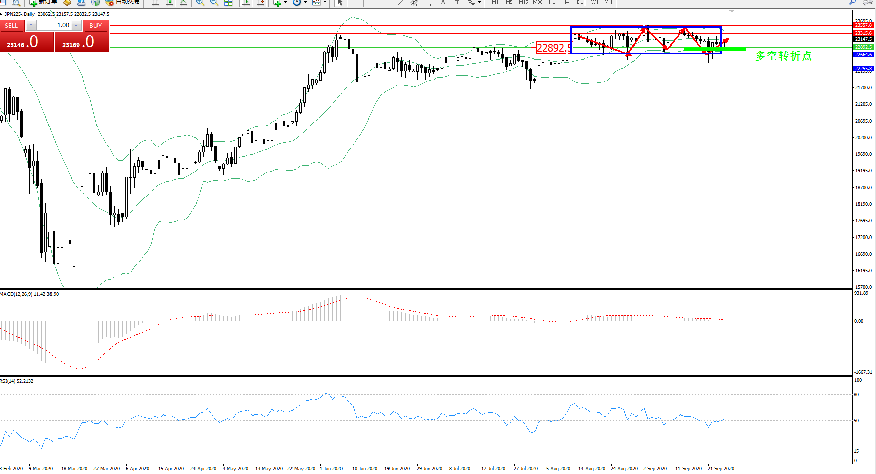 日经225指数9月25日(周五)收盘上涨124.68点,涨幅0.54%,报23212.50点。美元指数涨势暂歇,疫情继续恶化风险依旧,股市抛售压力也减弱,美国就业数据不佳,鲍威尔警告缺少财政刺激恐导致经济下行,姆努钦释放重启新刺激谈判信号,美众院民主党起草2.4万亿美元刺激计划,延长失业救济,再向民众发钱,投资者却也仍担心美国选情会造成更低负面影响,这也遏制了美元指数的进一步上行区间,在短期遭遇了额外波动走势之后,拜登若胜选,美经济或更快复苏;全球股市抛售减弱,随着日本政局趋于稳定,投资者们开始关注美国大选对美元、利率和地缘政治风险的影响。