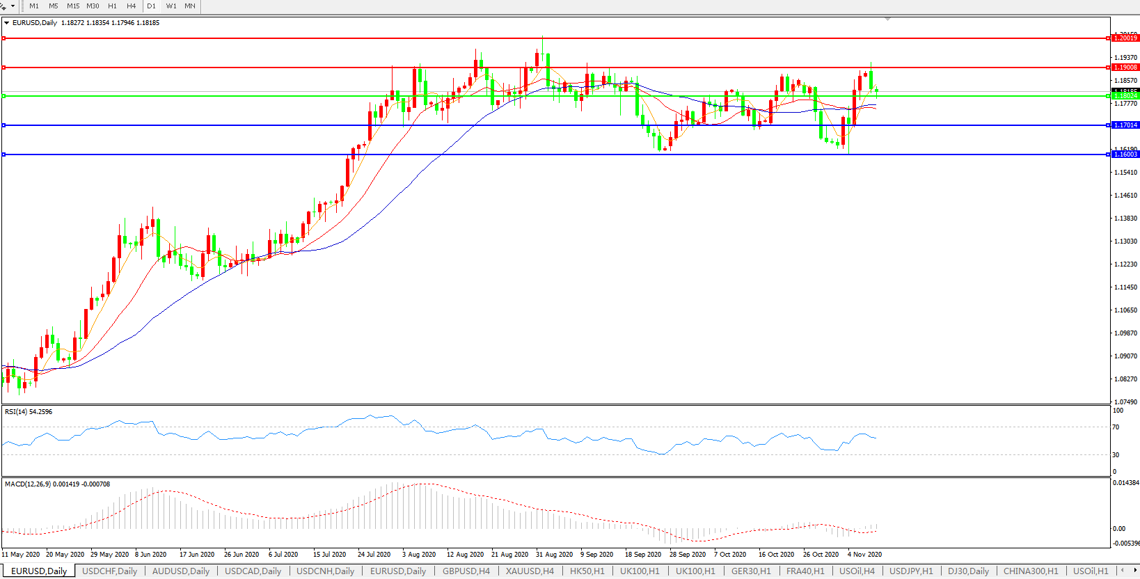 交易策略:1.1800上方看涨,目标1.1900、1.2000