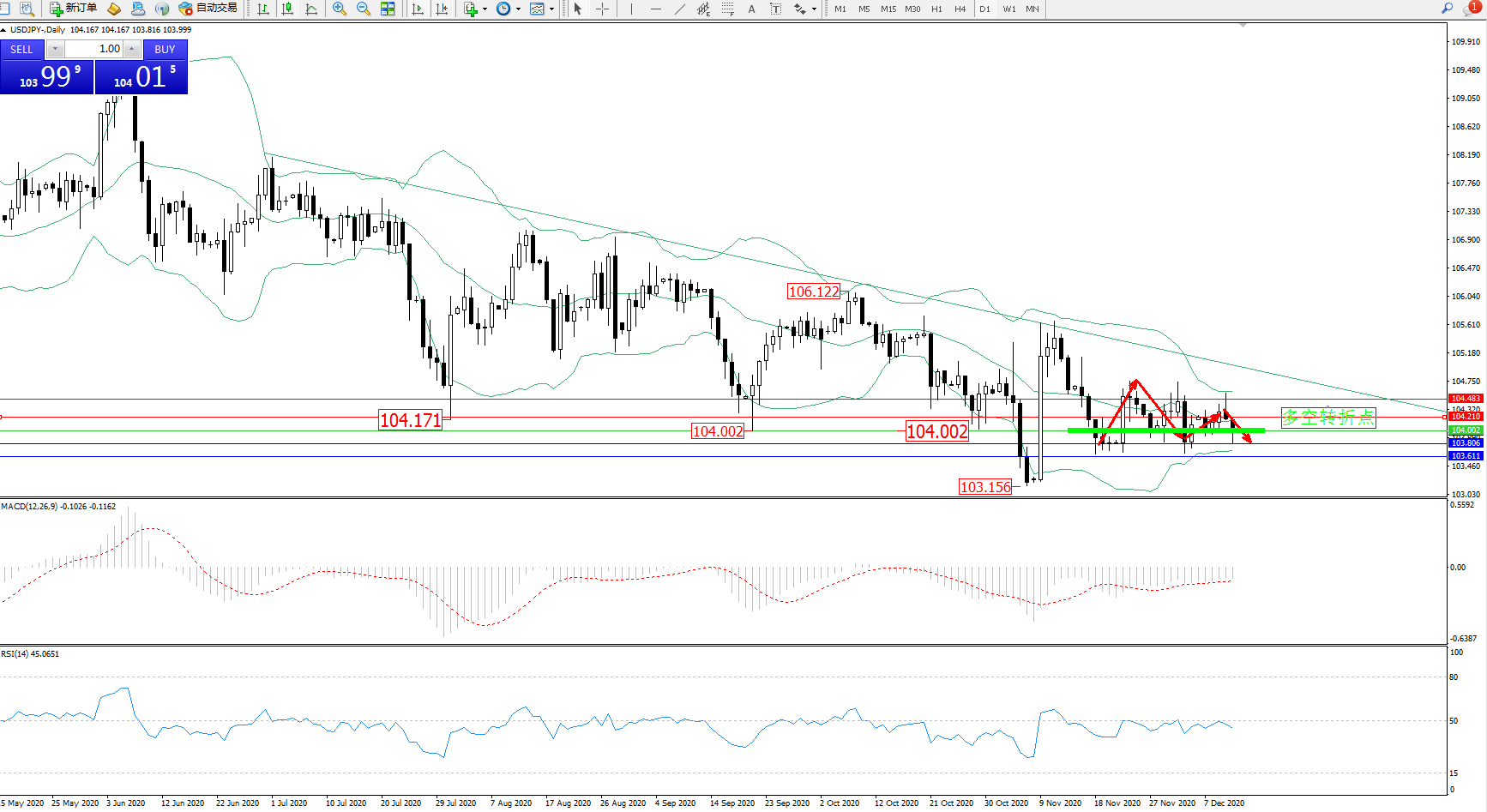 技术点评:空头动力长时间维持在布林带指标中轨下方维持窄幅震荡走势持续中,期间多次来回穿梭中轨处于中下轨区间整理,再度下探至下轨上方附近震荡,布林带指标呈收口走势持续中,MACD指标处于空头区域低位弱势整理缓慢向上移动中,RSI指标处于50均衡线下方持续徘徊后有下行迹象;