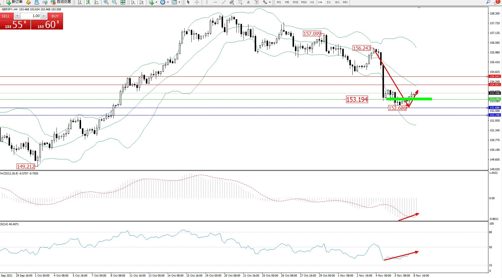 交易策略:153.194上方看涨,目标154.053、154.543