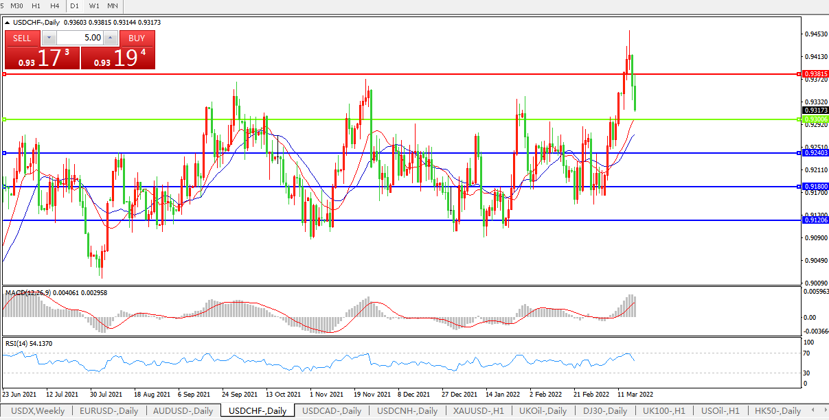 交易策略:0.9300上方看涨,目标0.9380、0.9500