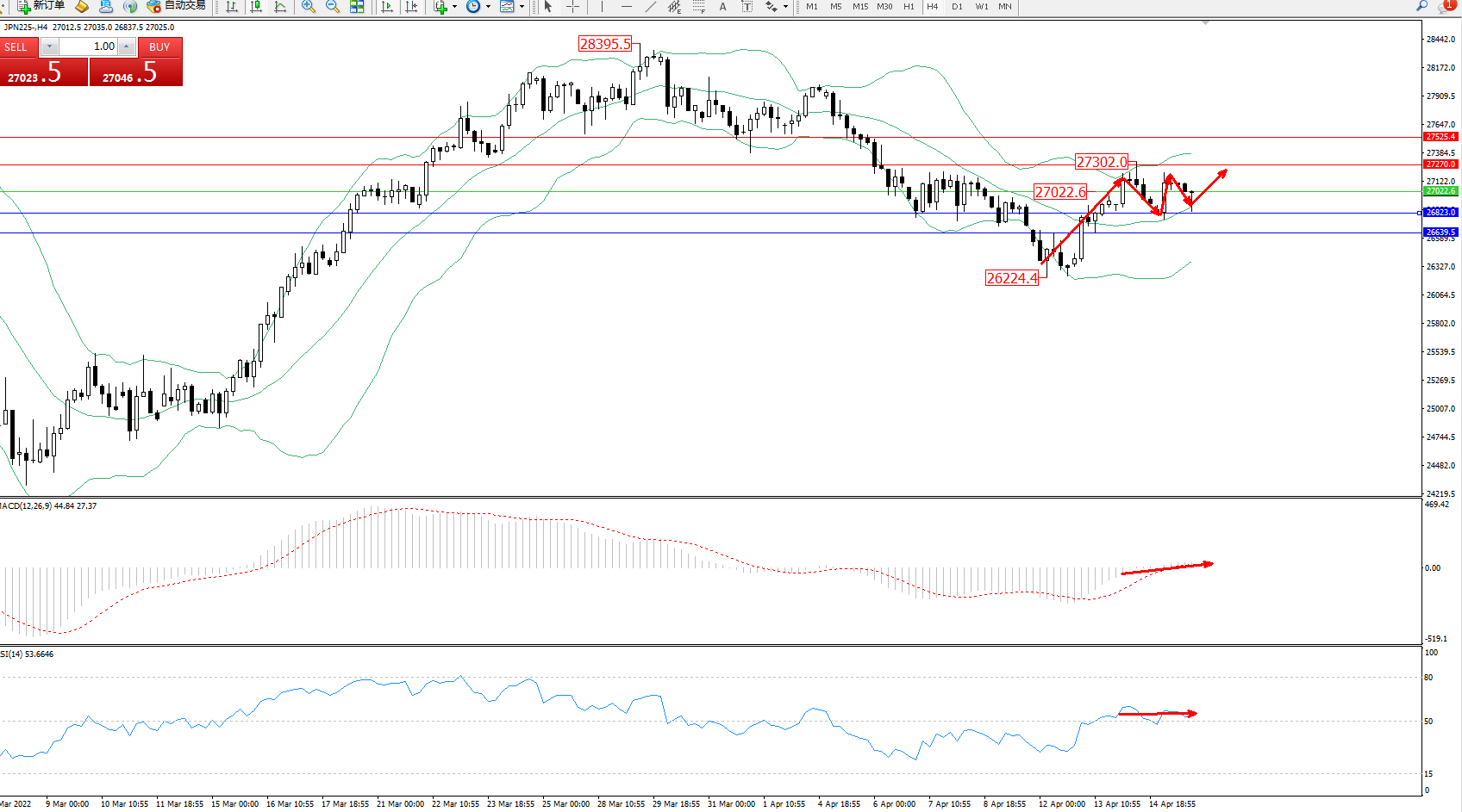 交易策略:27022上方看涨,目标27270、27525
