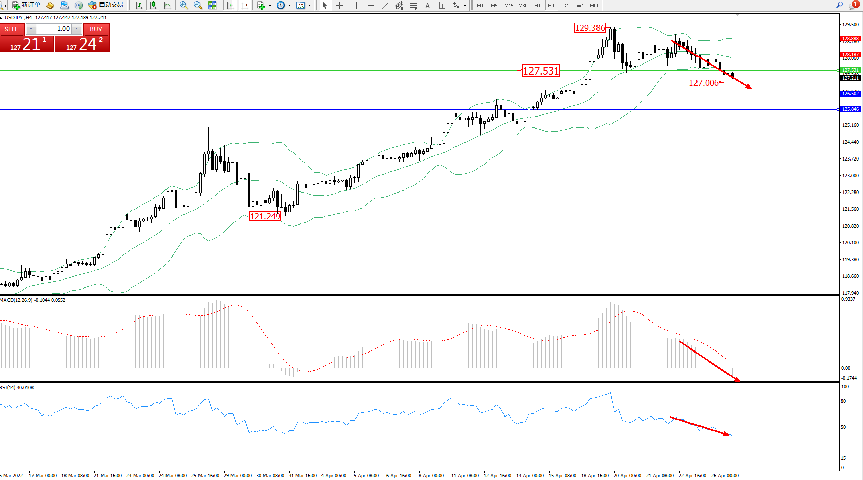 交易策略:127.531下方看跌,目标126.502、125.846