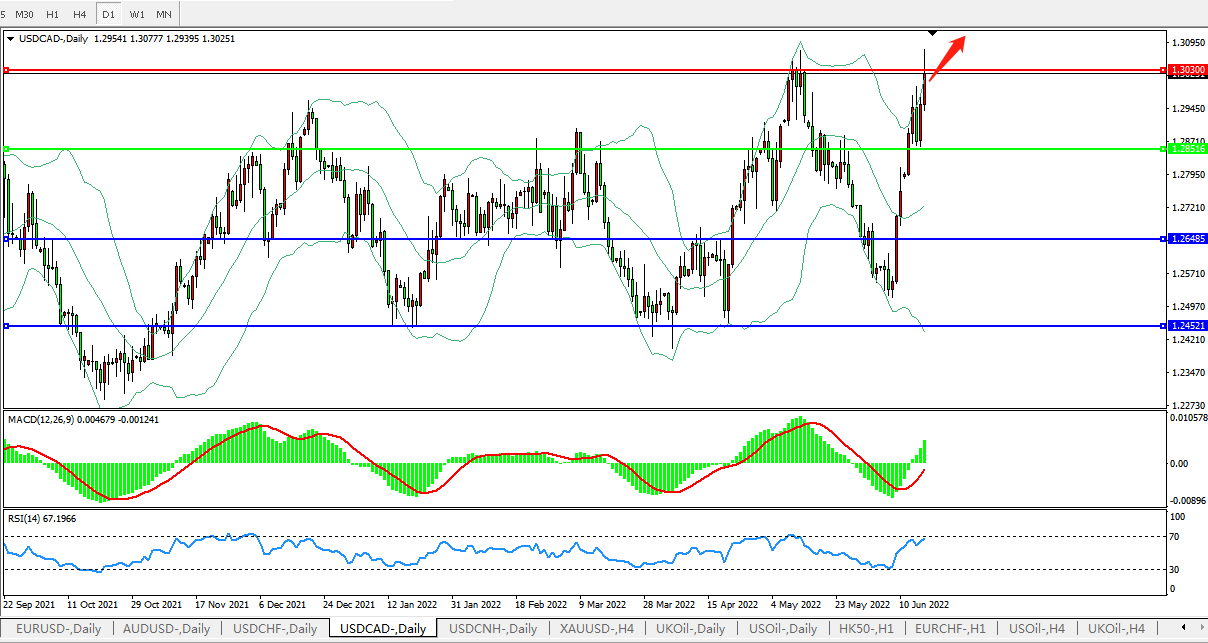 USDCAD:打破整理区间,有望继续上攻 USDCAD  CADJPY