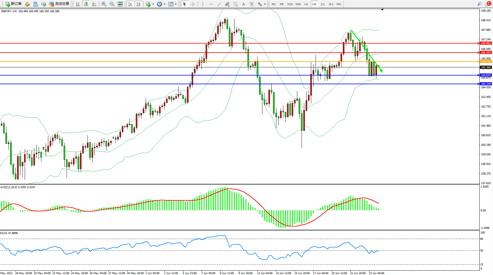 交易策略:165.741下方看跌,目标164.830、164.249