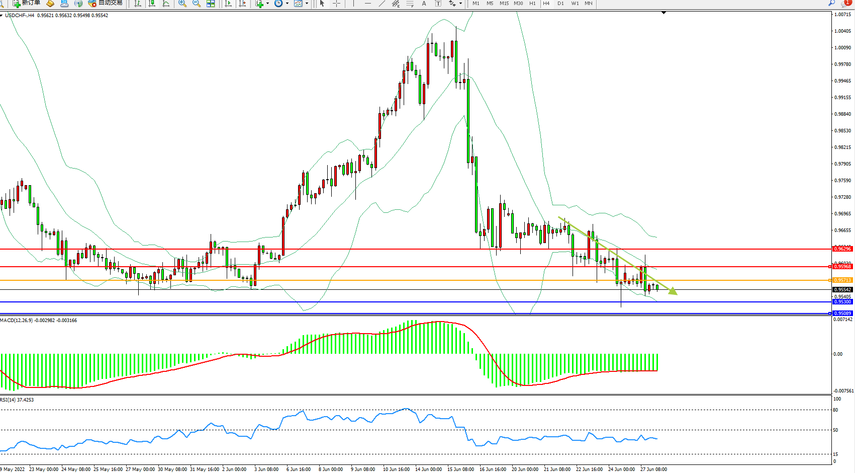 备选策略:0.95713上方看涨,目标0.95968、0.96296