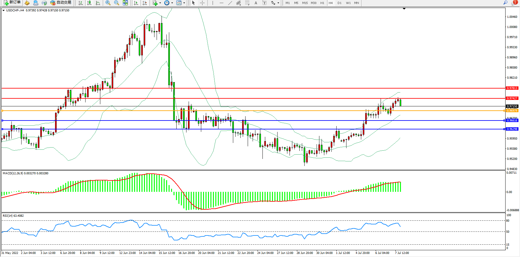 美元瑞郎USDCHF——4小时K线图显示: