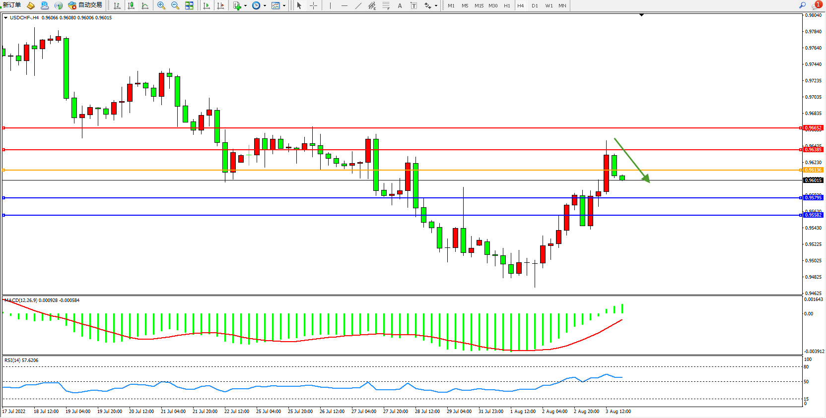 交易策略:0.96136下方看跌,目标0.95795、0.95582