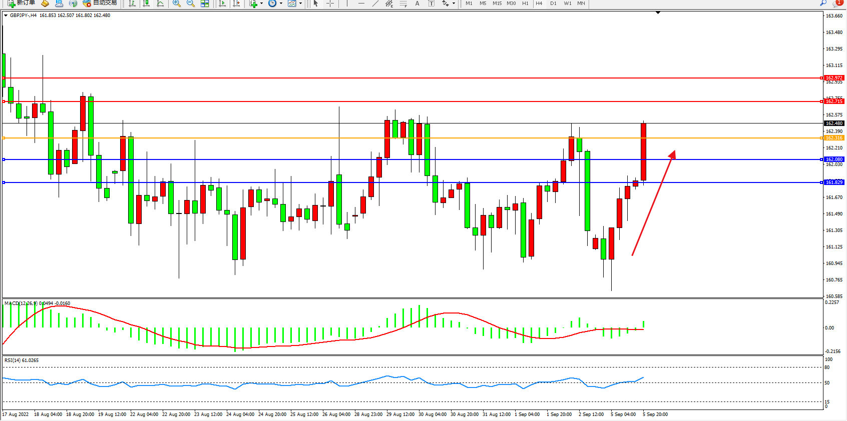 备选策略:162.316下方看跌,目标162.080、161.829