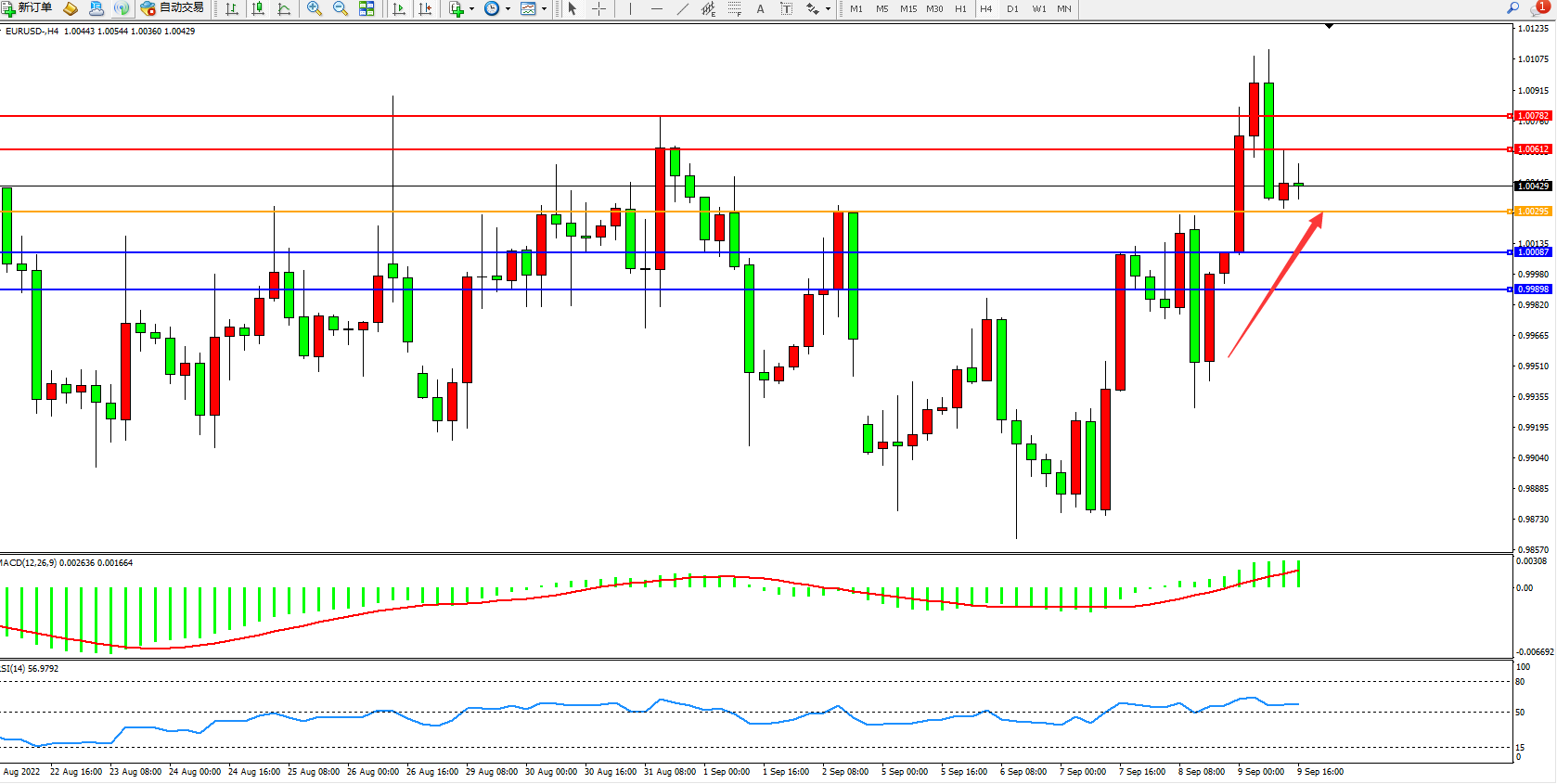 支撑位:1.00087、0.99898