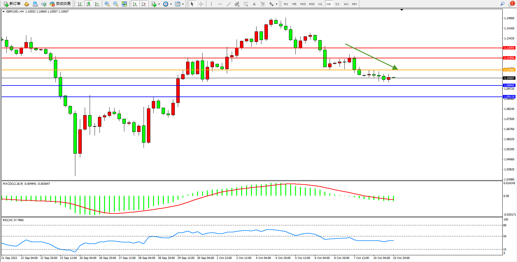 英镑美元GBPUSD ——4小时K线图显示: