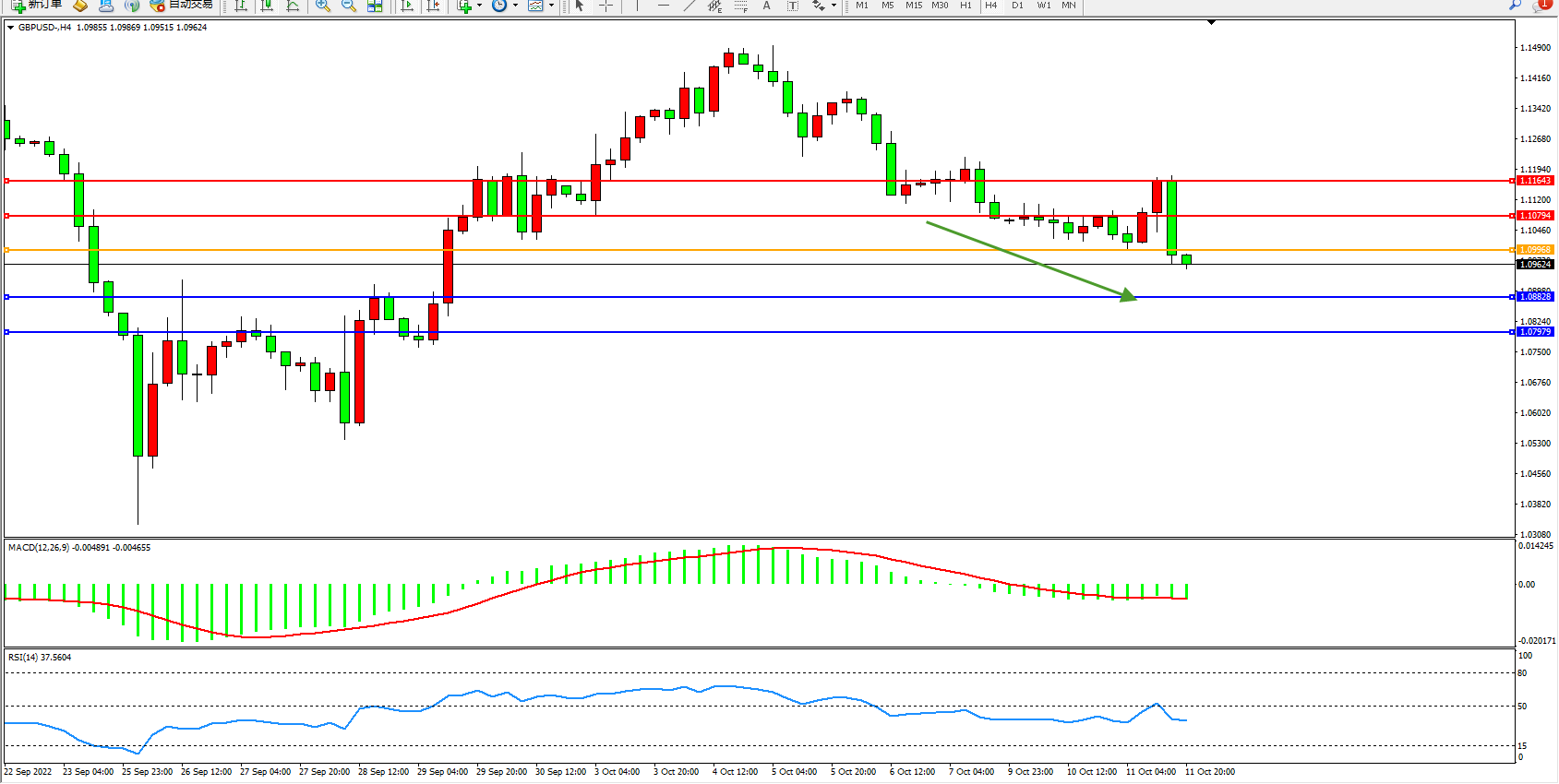 英镑美元GBPUSD ——4小时K线图显示: