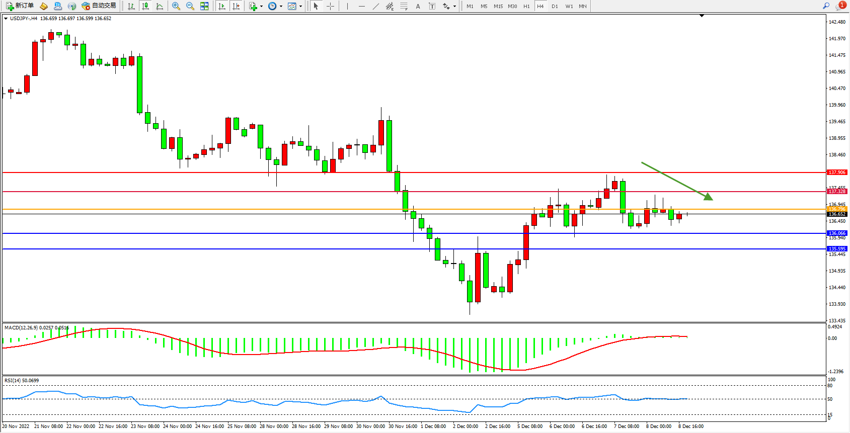 交易策略:136.796下方看跌,目标136.066、135.595