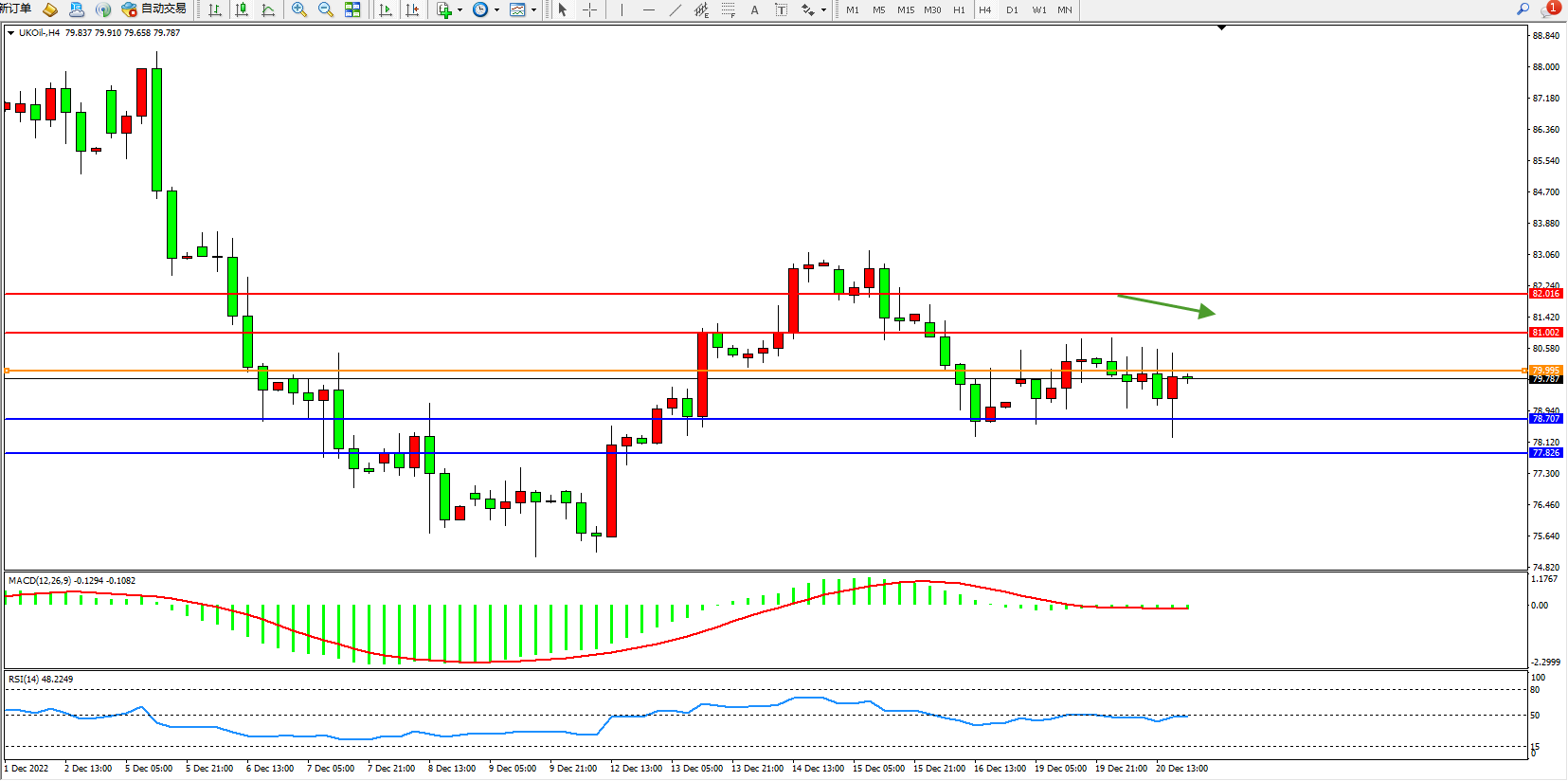 交易策略:79.995下方看跌,目标78.707、77.826