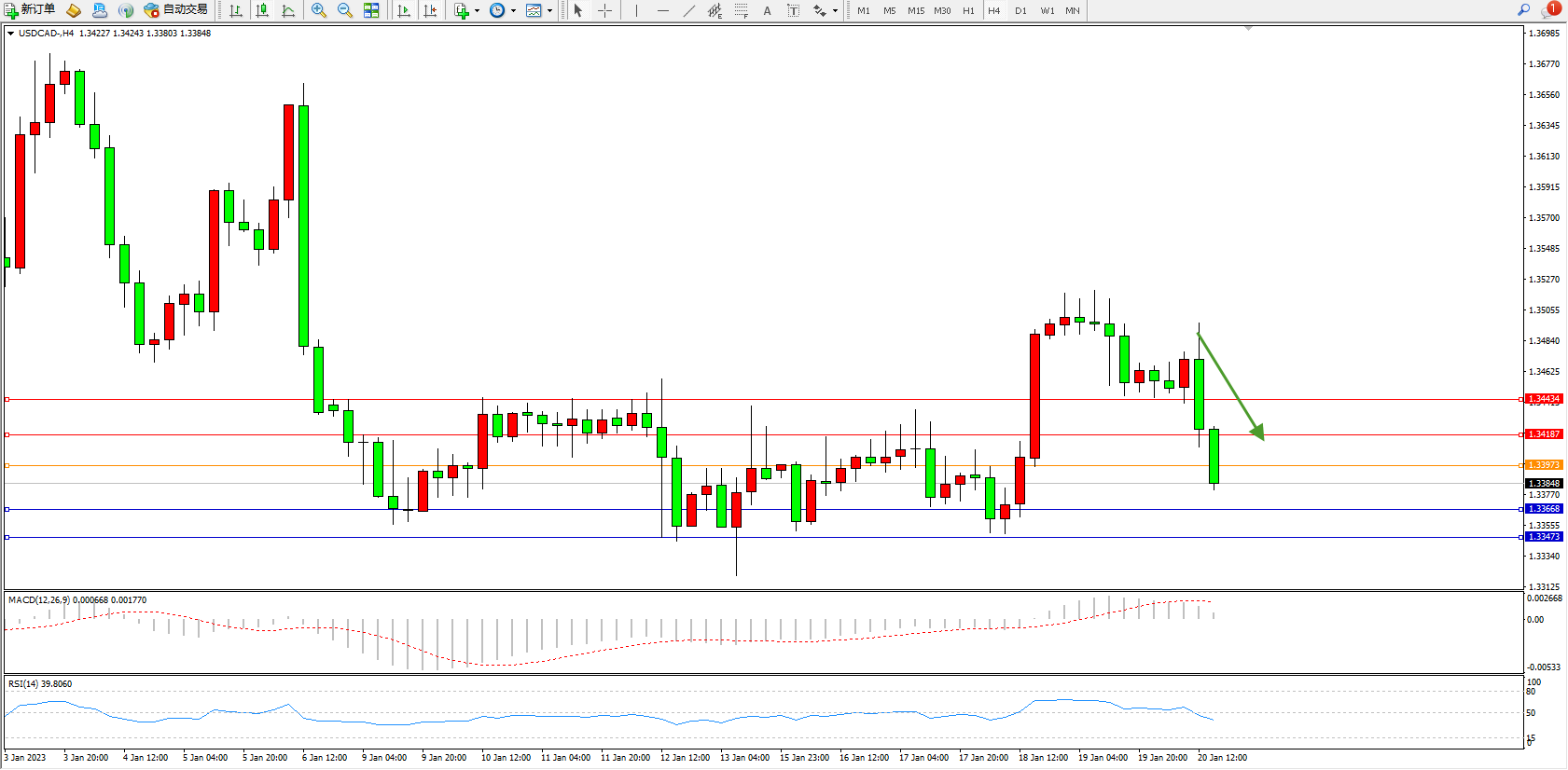 美元加元USDCAD——4小时K线图显示: