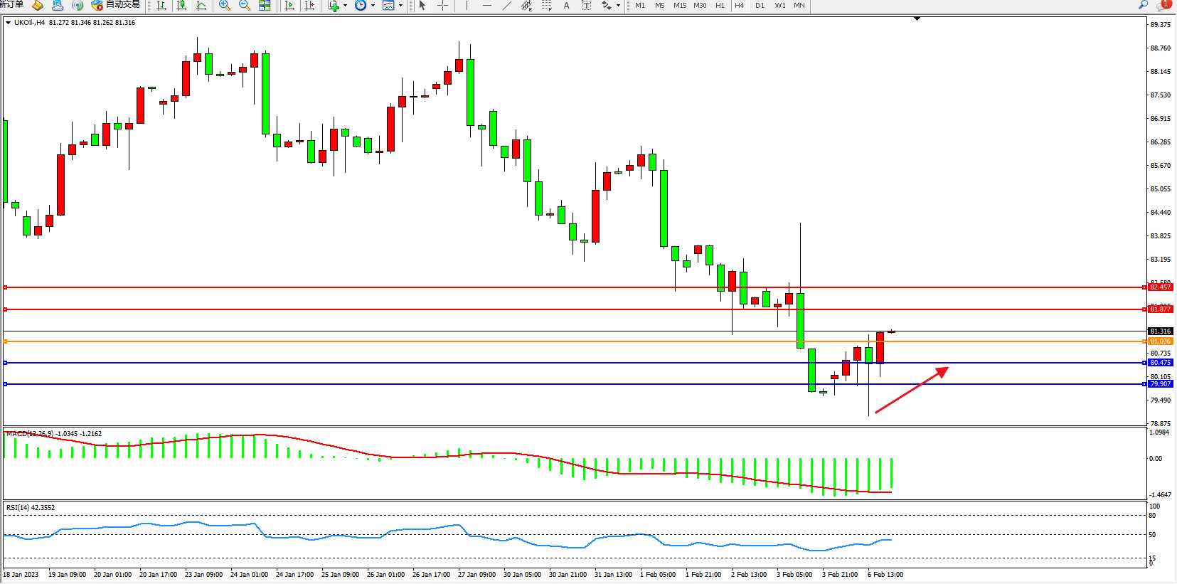 交易策略:81.036上方看涨,目标81.877、82.457