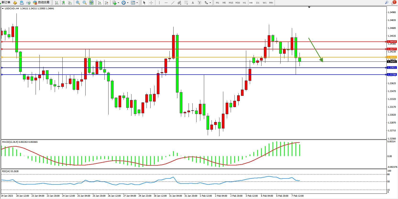 美元加元USDCAD——4小时K线图显示: