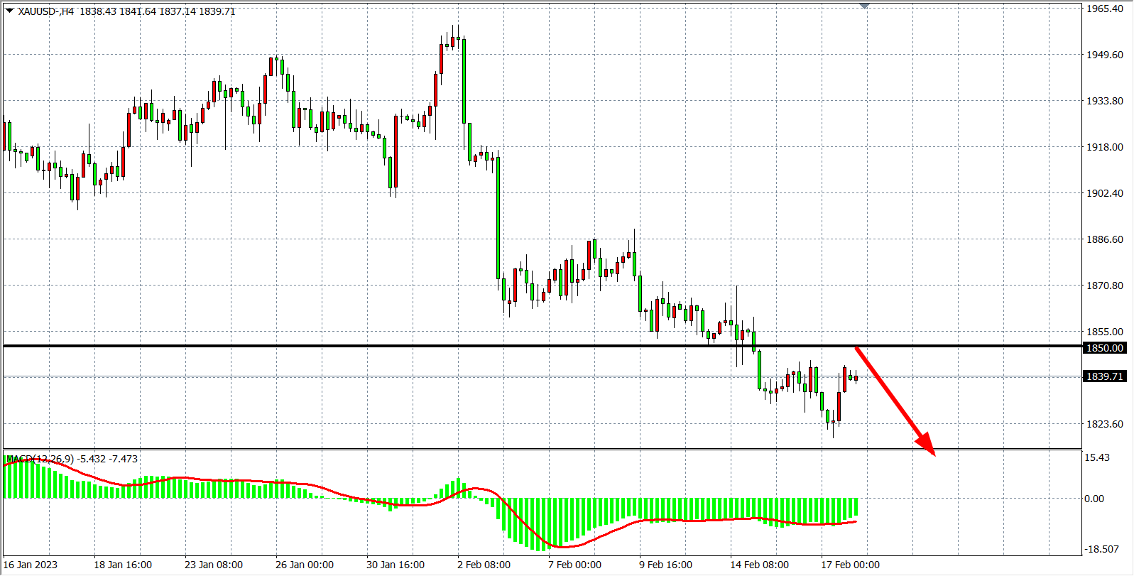 交易策略:在1850.00 之下看跌,目标1820.00         1800.00