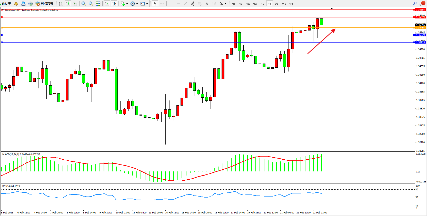 美元加元USDCAD——4小时K线图显示: