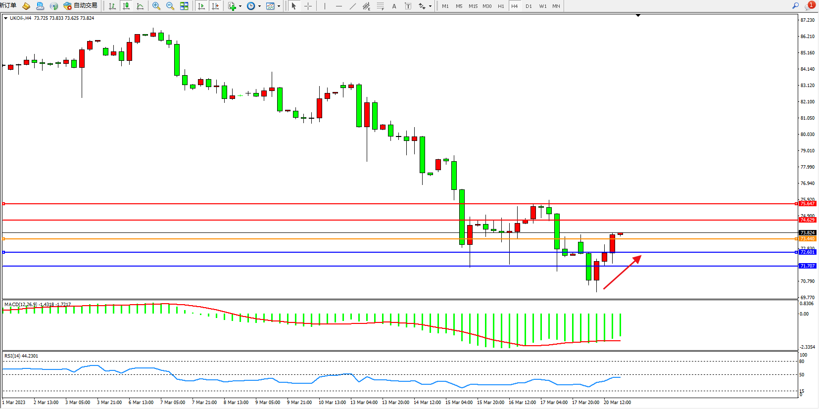布油UKOil——4小时K线图显示: