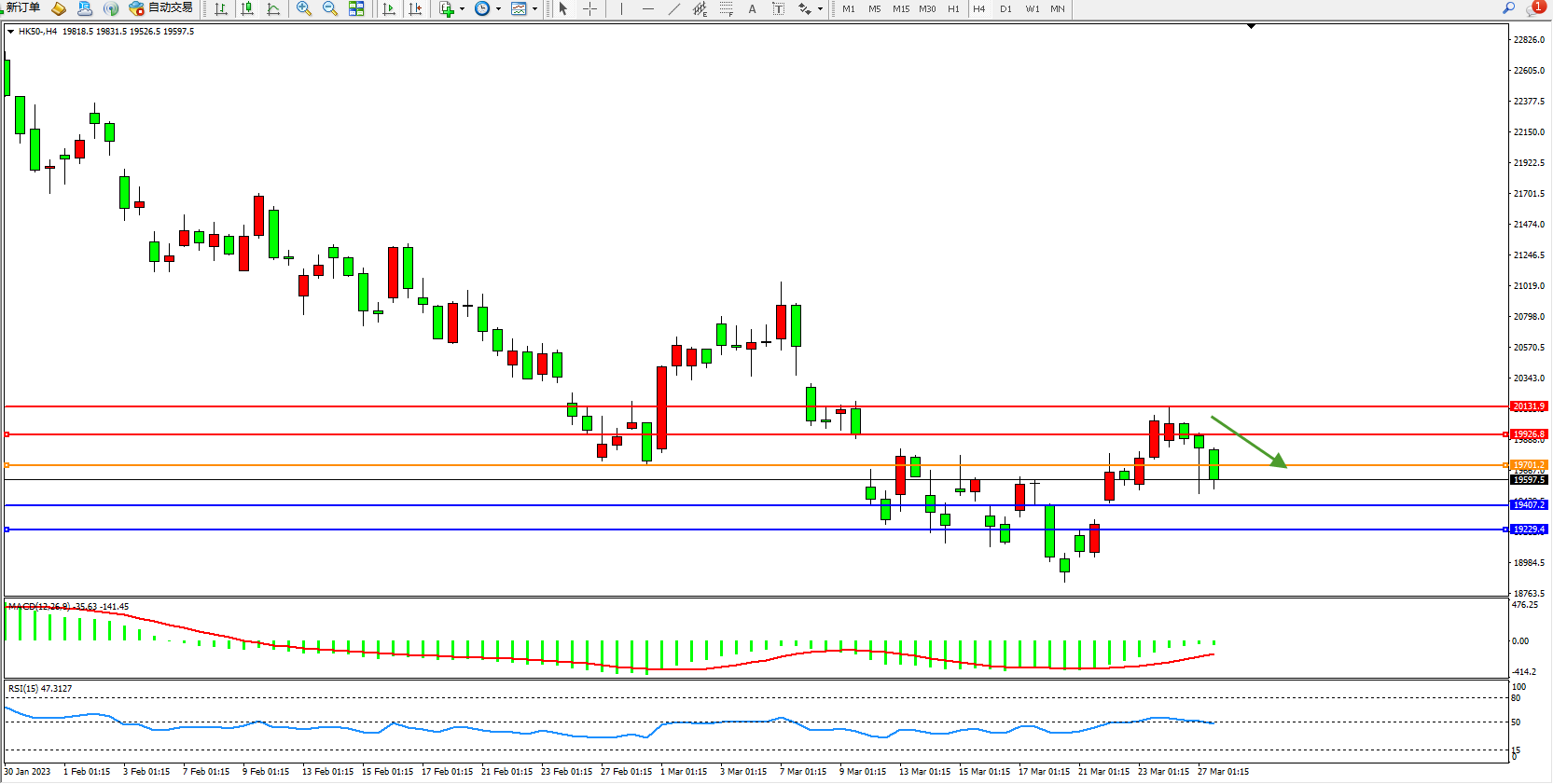 恒指HK50 4小时图
